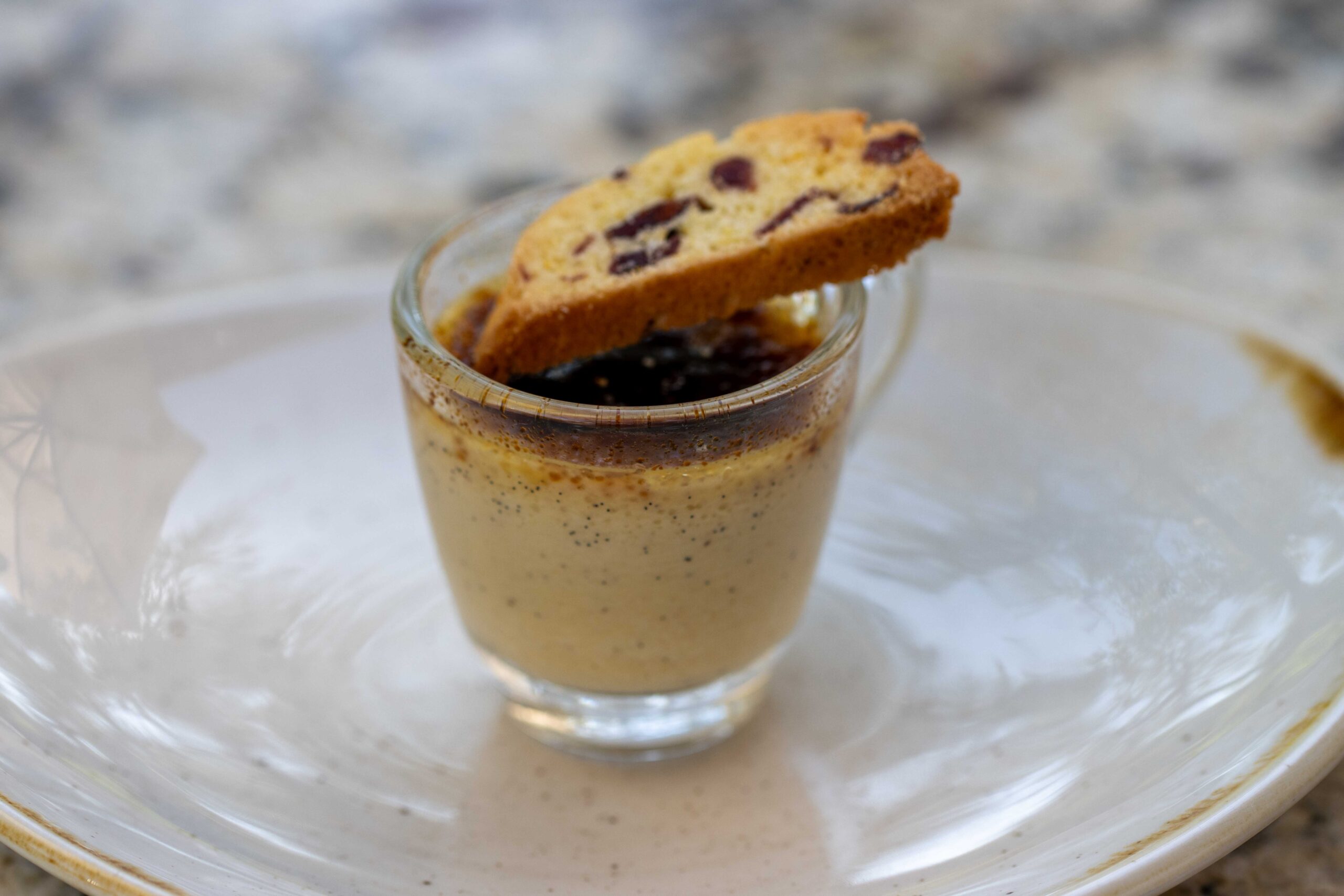 This jelly doughnut with spicy chocolate ganache pairs well with many of our heavier reds, especially Cabernet Sauvignon. The rosemary and cayenne highlight the floral notes in the wine, while the jam emphasizes the bright fruit. The richness of the dish helps to cut through the tannins in the Cabernet Sauvignon.